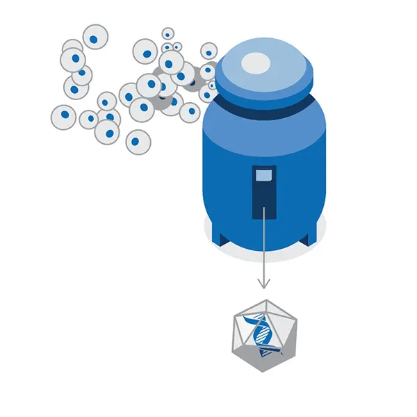 A triple transfection of the cells produces adeno-associated viruses, or AAV vectors, which serve as vehicles to get therapeutic genetic material into a patient’s cells. These are known as transgenes and are specifically designed to replace the function of a gene that patients need.