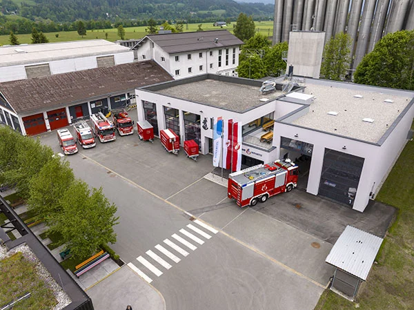 Erfolgreiche Einsätze erfordern nicht nur fortschrittliche Technik, sondern auch gut ausgebildete und motivierte Einsatzkräfte. Die Betriebsfeuerwehr Schaftenau zählt derzeit 67 Mitglieder – darunter sechs Frauen – und zeichnet sich durch eine hohe Ausbildungsbereitschaft aus. Jährlich nehmen die Feuerwehrangehörigen an rund 100 Schulungen teil, ein Drittel davon an der renommierten Tiroler Landesfeuerwehrschule in Telfs. Spezialausbildungen wie Höhenrettung, Industriebrandbekämpfung und Gefahrstoffmanagement gehören fest zum Trainingsprogramm. „Die Erweiterung bietet uns eine funktionale und zukunftsorientierte Infrastruktur, die unsere täglichen Abläufe unterstützt und die Ausbildungsbedingungen gezielt stärkt. Damit sichern wir die Einsatzbereitschaft auf einem konstant hohen Niveau – heute und in Zukunft“, unterstreicht Herbert Mayrhofer, Kommandant der Betriebsfeuerwehr Schaftenau.