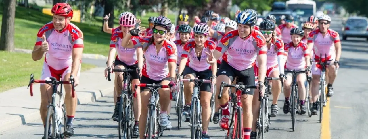 Each year for the past 12 years, Novartis employees have been giving back to the breast cancer community. The Ride for Life initiative began with a few employees who wanted to help raise awareness and funds for breast cancer research by taking part in a long-distance cycling event that starts in Toronto and makes overnight stops in Cobourg, Kingston and Cornwall before finishing at the Novartis Pharmaceuticals Canada Inc. headquarters in Dorval, Quebec. This year, 40 employees from across the Novartis businesses in Canada completed the ride. Since the start of the initiative 12 years ago, Novartis employees have collectively raised more than 1 million dollars.