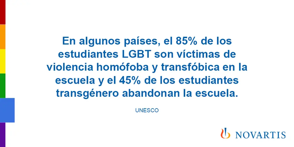 Sumándonos a la lucha contra la discriminación y la estigmatización que sufren las personas de este colectivo, desde Novartis fuimos la primera compañía farmacéutica global en apoyar los principios de conducta contra la discriminación contra las personas lesbianas, ais, bisaxuales, trans e intersexuales (LGBTI) de las Naciones Unidas. Como compañía comprometida con la diversidad y la cultura del respeto y la igualdad, aportamos nuestro grano de arena para poner fin a la violencia y la discriminación.