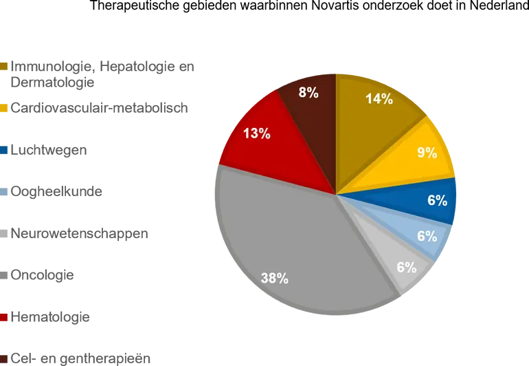 Novartis doet op verschillende gebieden onderzoek, zoals immunologie, kanker, luchtwegen neurologie en hart- en vaatziekten. Het gaat om alle klinische fases van geneesmiddelonderzoek, ook de vroege fases. Voordeel is dat Nederlandse zorgverleners zo al in een vroege fase ervaring en kennis opdoen met een nieuwe behandeling of therapie. Meer informatie over de pijplijn is te vinden op de Global website van Novartis.