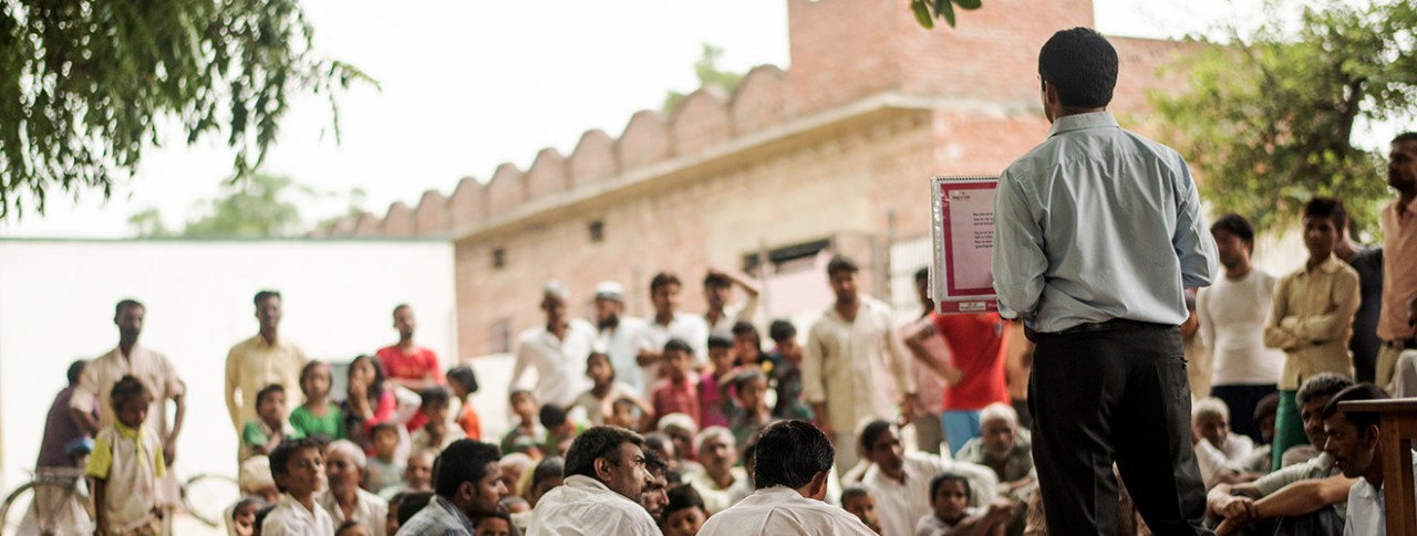 On the ground, however, Arogya Parivar still faces countless challenges—most of which are borne daily by Kumar and the nearly 250 other health educators in the program. Personal beliefs and habits in most villages—such as trusting traditional healers rather than accredited doctors, sharing medications, ignoring nutrition, and open defecation—are ingrained both by culture and circumstance. In the beginning, Kumar’s presentations on hygiene and what to do if you feel sick were met with suspicion and sometimes hostility. “I had never mobilized a crowd”, said Kumar, who is 27 and has been working with the program for four years. “I came home and cried. People would walk out. People would say, ‘We know it better than you. We have busy lives. Don’t bother us’”.
